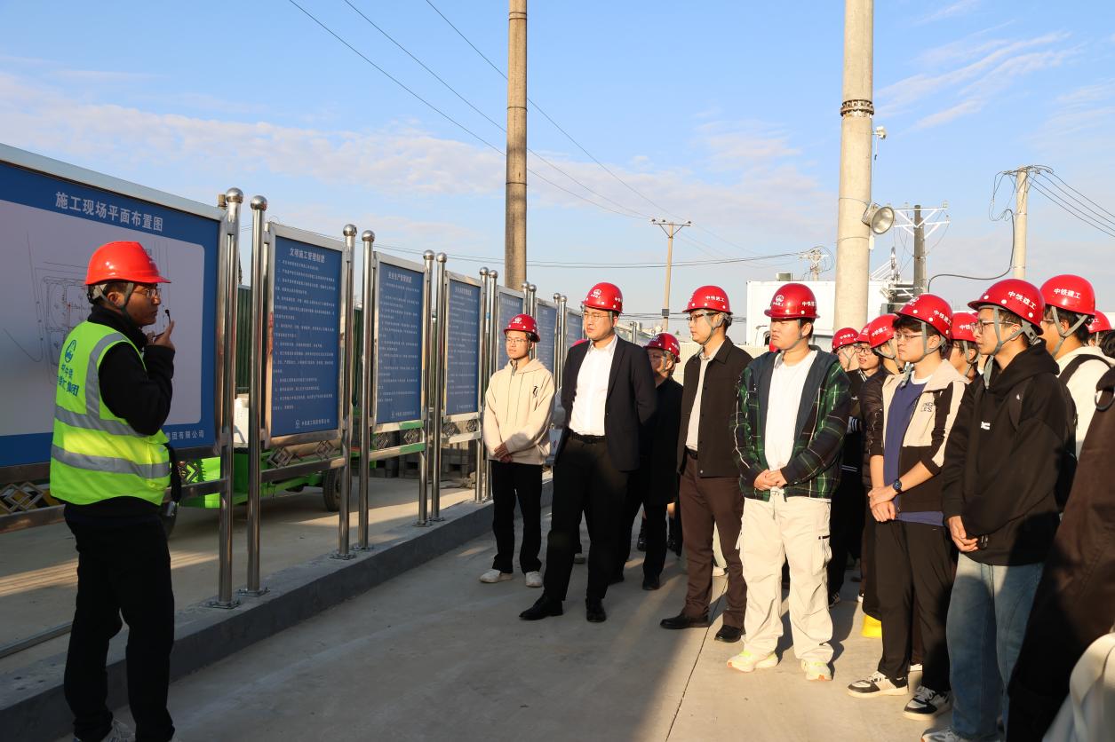 随后,师生党员实地走访了中铁阅湖郡住宅项目与永丰工业园项目现场。项目负责人详细讲解了工程施工中的技术应用、绿色建材使用、智能质量管控系统等情况。同学们一边仔细观察施工工艺,一边记录关键技术要点,一边向项目施工人员问题请教,直观感受到理论知识与工程实践的深度融合,纷纷表示“这样的实地交流比课本学习更有冲击力”。
