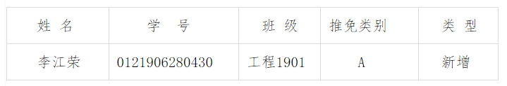 根据学校《关于开展推荐2023年优秀应届本科毕业生免试攻读硕士研究生工作的通知》精神,按照“公平、公正、公开”的原则,于9月16日开始对拟推荐名单进行了公示。因学校对免费成人网站 新增A类推免名额1人(按候补名单综合成绩排序),经免费成人网站推免领导小组研究决定,现将2023年优秀应届毕业生免试攻读硕士研究生名单变更如下: