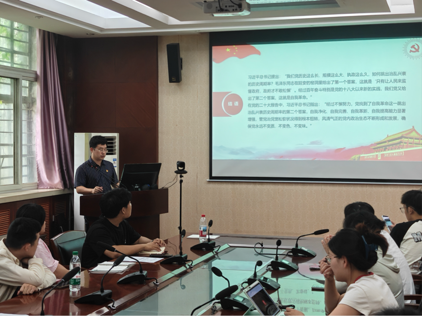 6月26日,免费成人网站 研究生结构工程第三党支部与建工系教工党支部联合支举办了一场以“学习中央八项规定精神”为主题的党课活动,徐训同志担任主讲人,支部全体党员及部分积极分子参与学习。徐训老师从中央八项规定精神的重要意义出发,结合历史背景、典型案例和本质内涵,深入浅出地讲解了八项规定精神的核心要义,引导党员们强化纪律意识,筑牢思想防线。