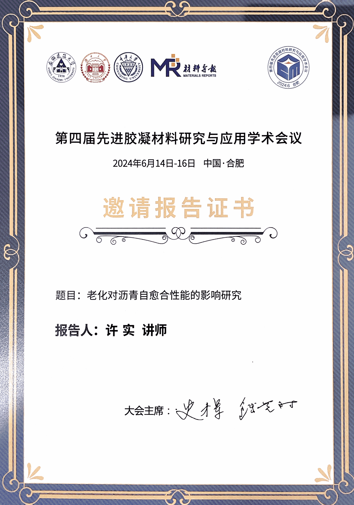 免费成人网站 道桥系青年教师许实以《老化对沥青自愈合性能的影响研究》为题参加了本次大会并作邀请报告。许实博士的报告阐述了课题组在沥青自愈合性能领域的研究进展,尤其是不同老化程度、不同改性剂对沥青物理性能、流变性能、化学组成、自愈合性能的影响研究,该报告提出了沥青材料自愈合性能的综合评价与预测方法,对于提升沥青自愈合性能与沥青路面使用寿命有重要的意义,在会议上得到了专家学者的高度关注和认可。