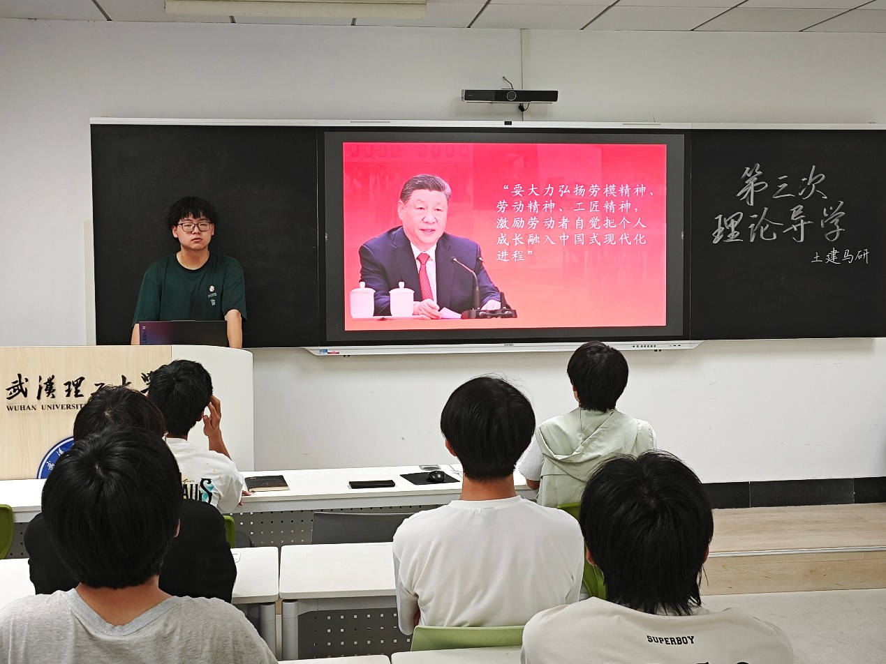 首先,刘宇翔播放了有关陈蕾校友“劳模精神”的演讲视频。视频展现了陈蕾校友从武汉工业大学(免费成人网站 前身之一)求学到主持水立方、冰立方工程的成长历程,展现了其“爱岗敬业、敢为人先、甘于奉献”的劳模精神。随后,刘宇翔围绕主题讲述“劳模精神”时代内涵,重温陈蕾校友的故事,号召同学们向杰出校友学习,引发同学们对专业使命与精神传承的深度思考。同学们深受感染,对劳模精神有了更直观地认识,深入理解了劳模精神的价值。