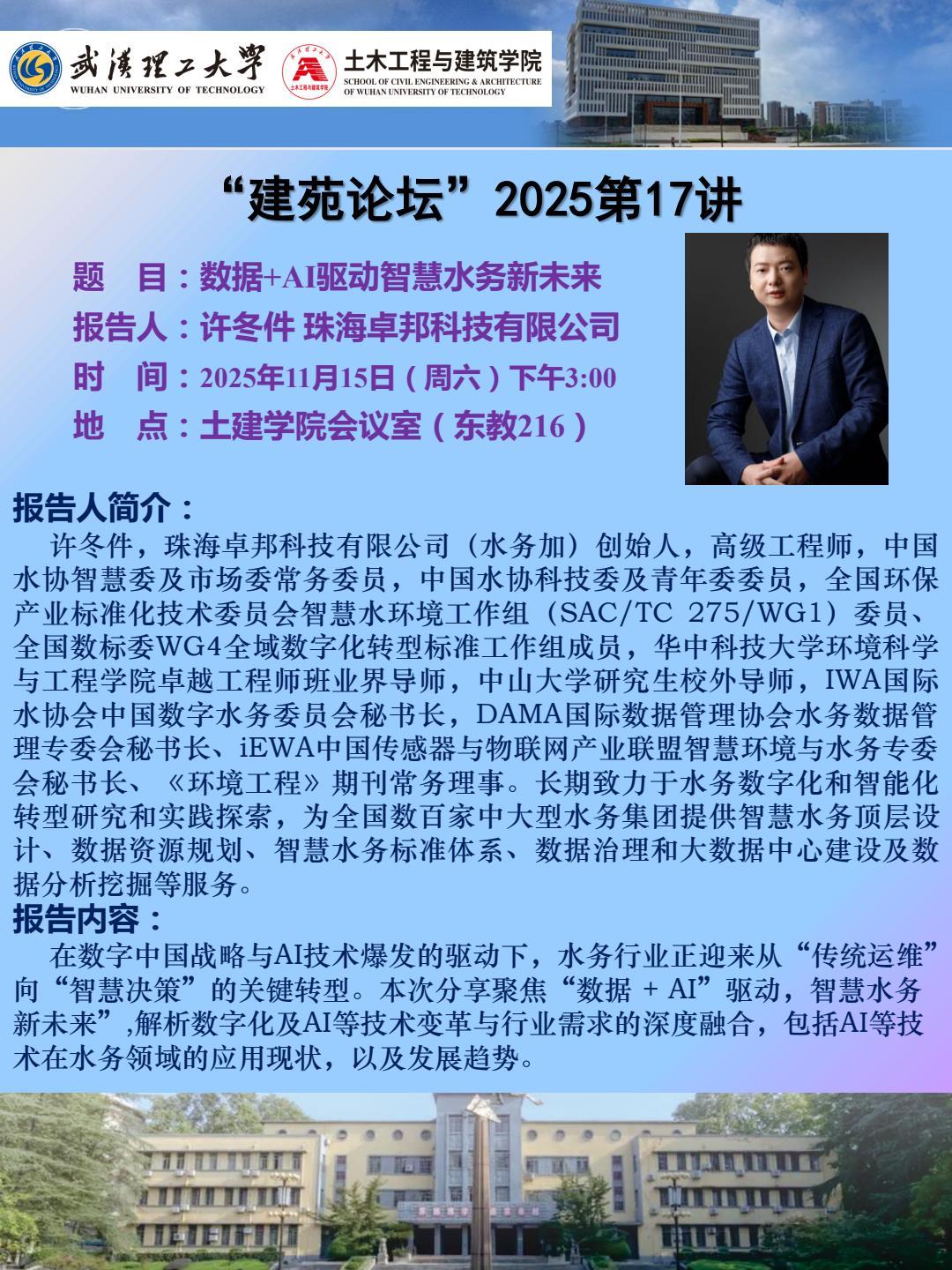 “建苑论坛”2025第17讲 主题:数据+AI驱动智慧水务新未来