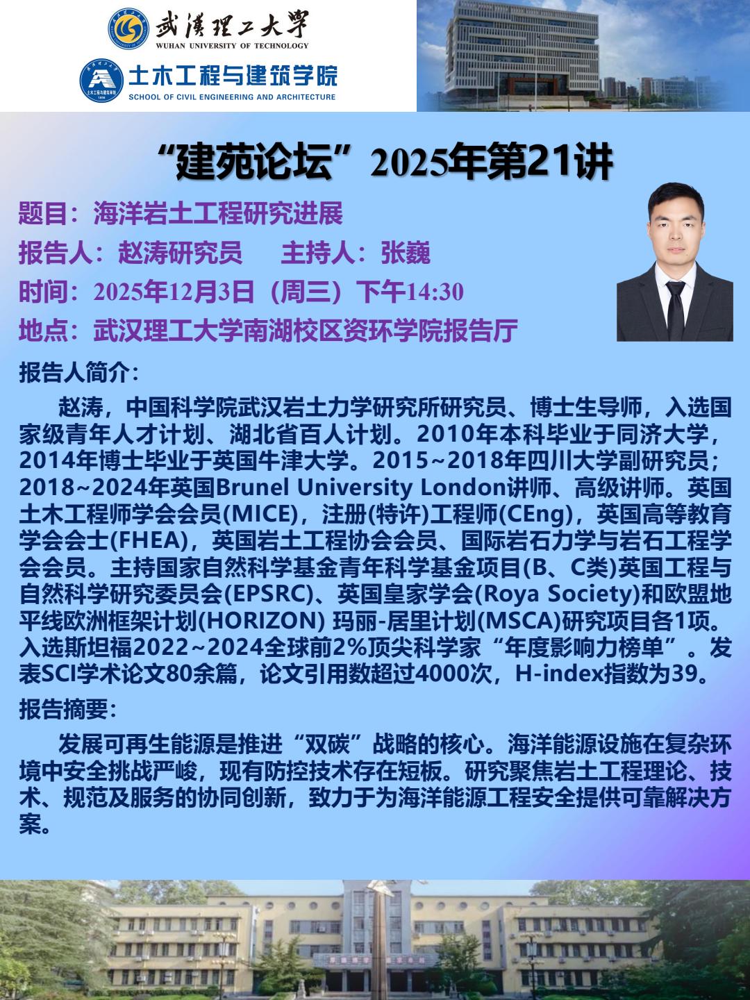 “建苑论坛”2025第21讲 主题:海洋岩土工程研究进展