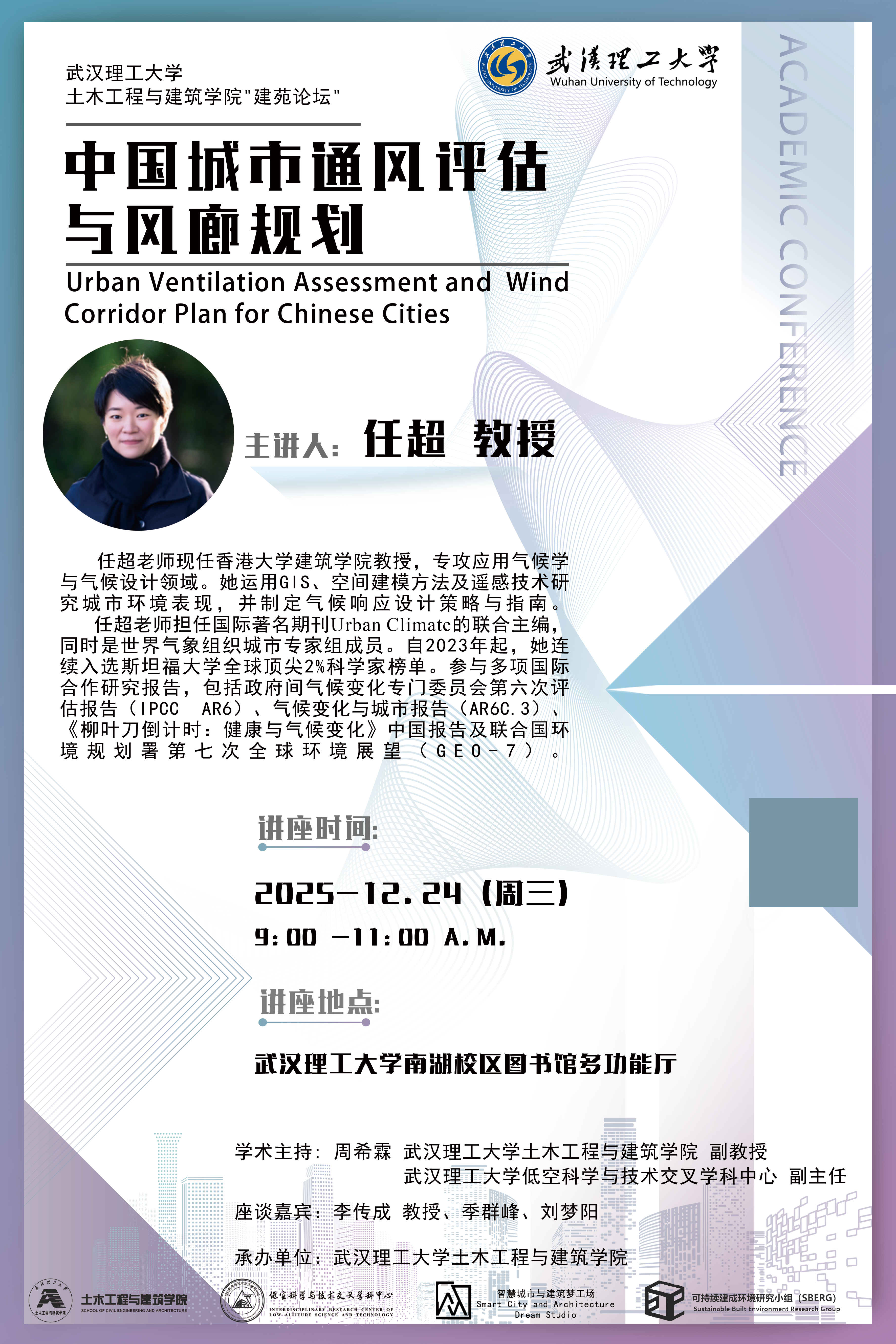 “建苑论坛”2025 第24讲 主题:中国城市通风评估与风廊规划