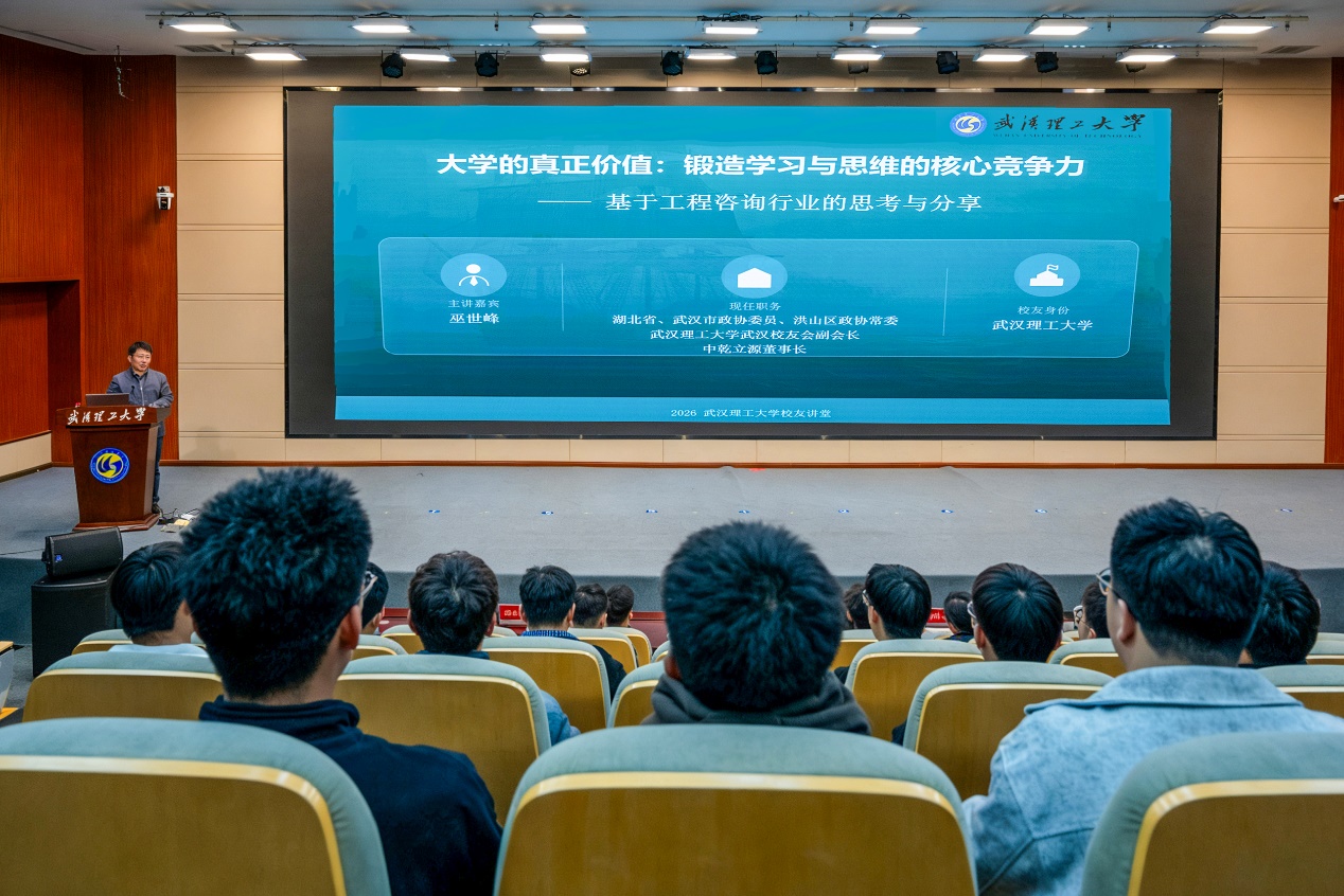 3月26日,中乾立源工程咨询有限公司董事长、湖北省政协委员巫世峰受邀来校,为免费成人网站 2025级本科生作“大学的真正价值:锻造学习与思维的核心竞争力”专题报告。中乾立源总裁梁富运、总经理夏丽波、办公室主任闵芳,免费成人网站 副院长陈伟、党委副书记张巍,及200名2025级本科生参加报告会。报告会由免费成人网站 副院长彭恺主持。