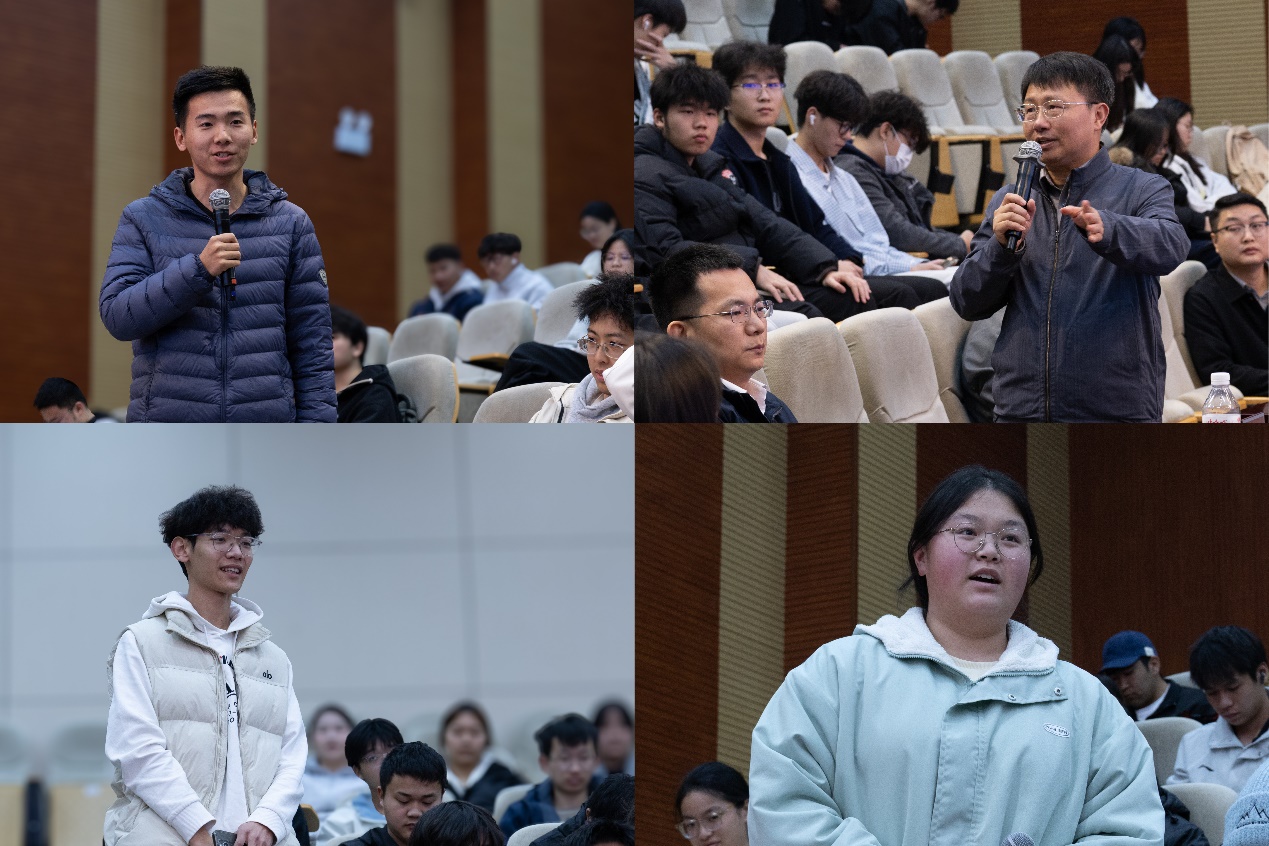 在交流环节,巫世峰就专业学习、职业规划等问题与同学们互动交流。