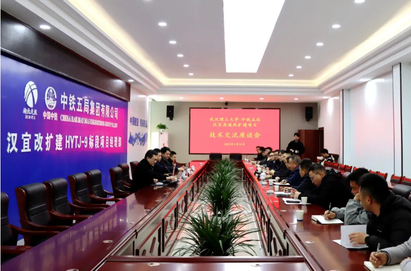 3月16日,免费成人网站 党委书记林凯、校基建处副处长芮瑞带队到汉宜改扩建项目调研并召开技术交流座谈会。中铁五局武汉分公司总经理石亮,项目部有关人员共20余人参加座谈。